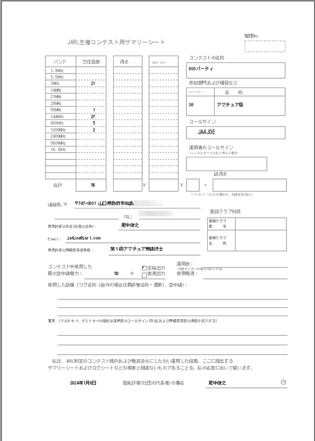 ↑ 2024のQSOパーティのログ。上記のソフトで処理できてしまいます。ホンマに便利です。